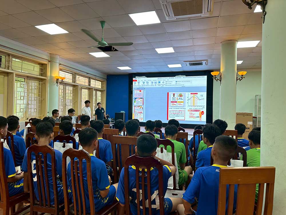 ベトナム国立エリートアスリートトレーニングセンターにて、ベトナムVリーグ所属、ハノイFC下部組織のハノイFC U15の選手と指導者に向けてNEXT18-プロテインの勉強会を開催致しました。この日は、試飲会も実施し、選手達も大変美味しいとの声を沢山いただきました!